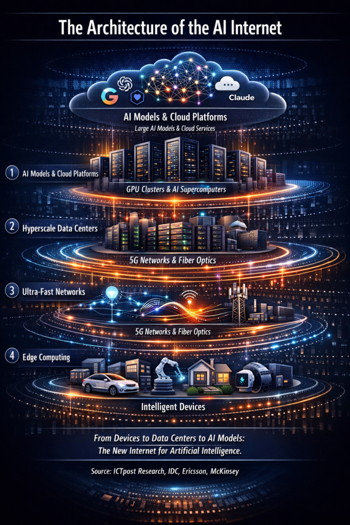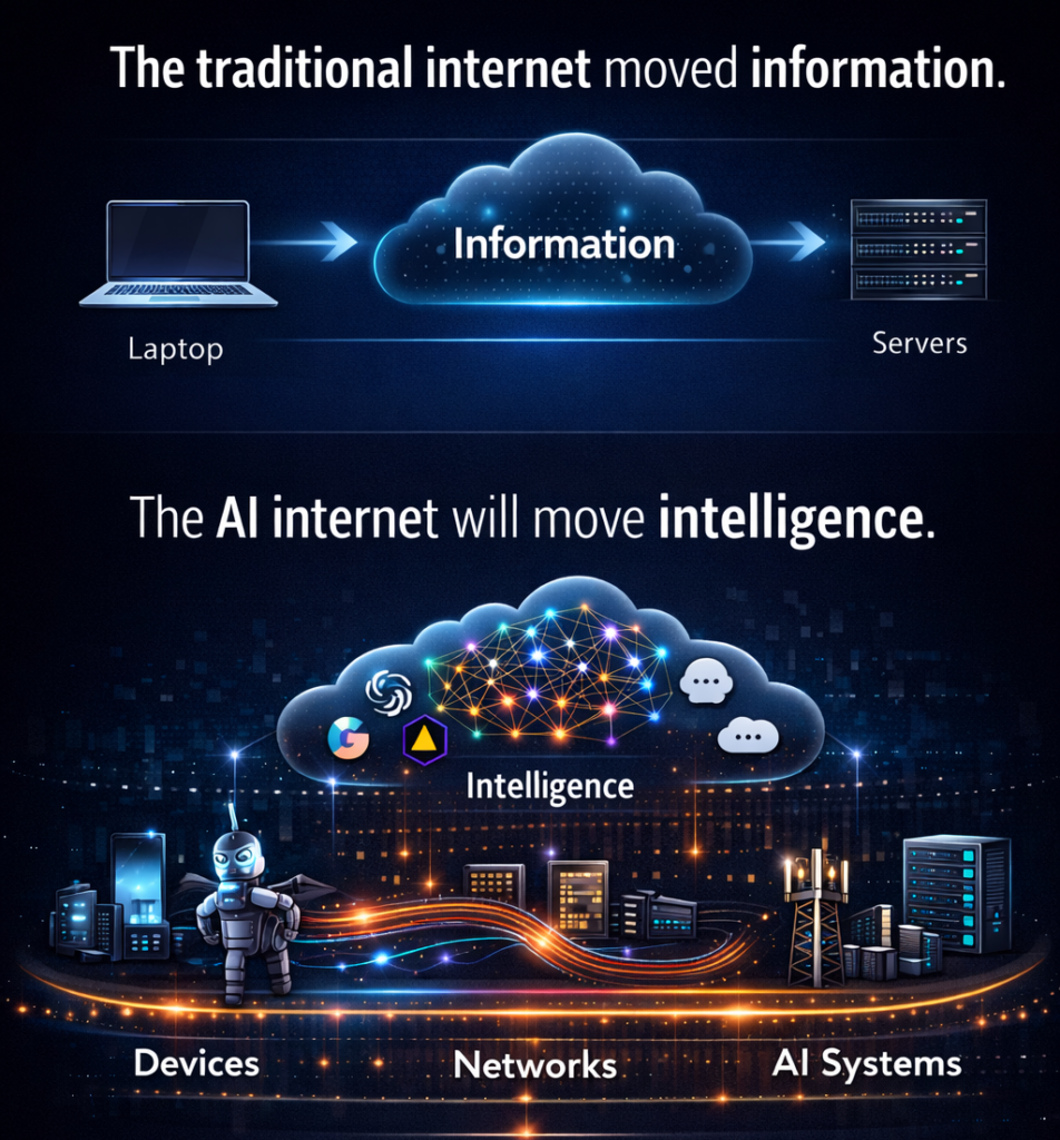 Artificial intelligence is transforming the internet from a content delivery network into a global intelligence infrastructure—one where machines, AI models, sensors, robots and humans continuously exchange data, decisions and commands.